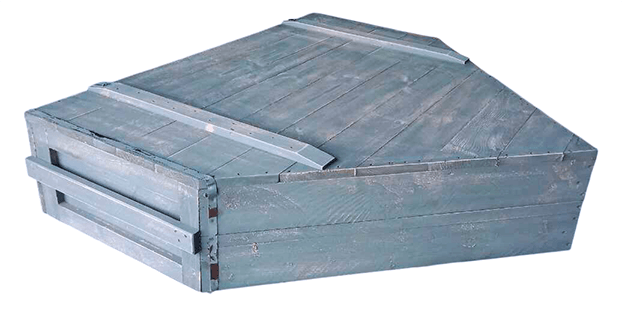 • МатериалCухая не струганная доска 130х22 мм., чемоданные защелки, тарная лента